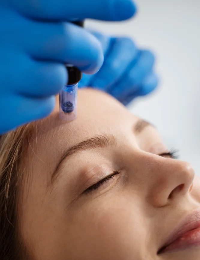 No — it’s performed with numbing cream for a comfortable experience and minimal downtime.